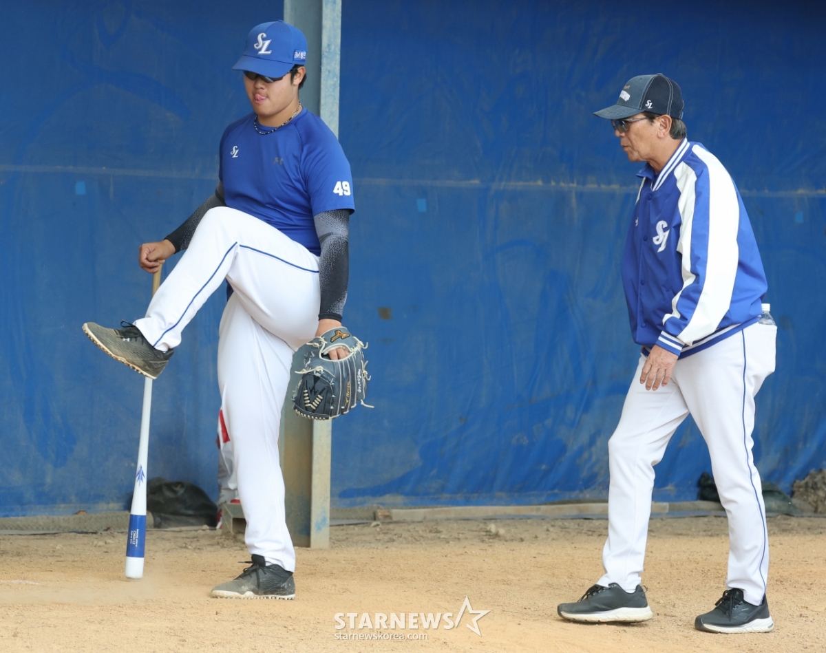 *此内容由AI翻译生成。19日,三星狮子队选手团在日本冲绳Onnason Akama球场进行了第2次春季集训。投手郑敏成在崔日彦教练的指导下进行候补投手训练。© STARNEWS. 未经许可禁止转载或再分发*此内容由AI翻译生成。