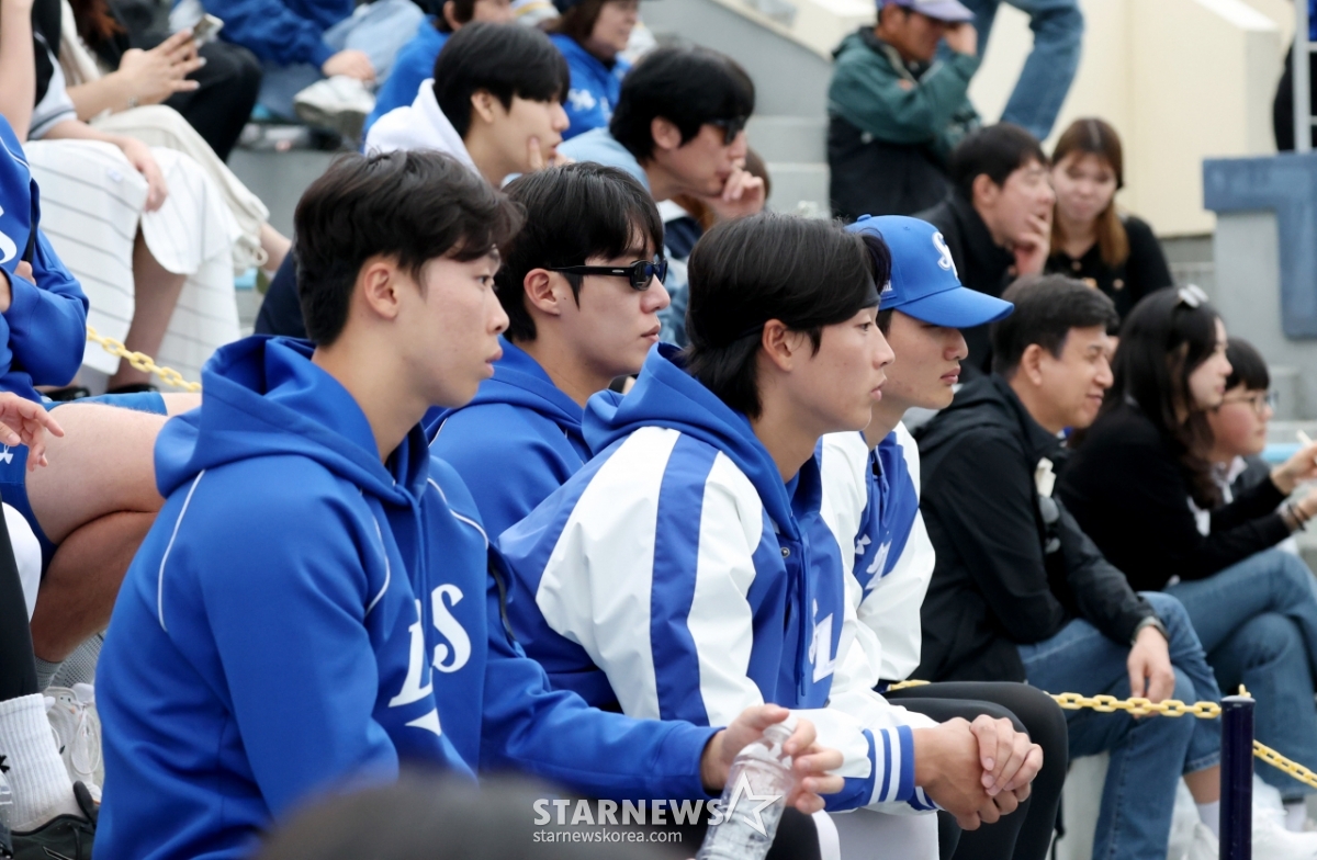 *此内容由AI翻译生成。WBC代表队20日在日本冲绳Onnason Akama球场与三星狮子队进行了练习赛。图为,包括元泰仁在内的三星队选手正在主席台观战。© STARNEWS. 未经许可禁止转载或再分发*此内容由AI翻译生成。