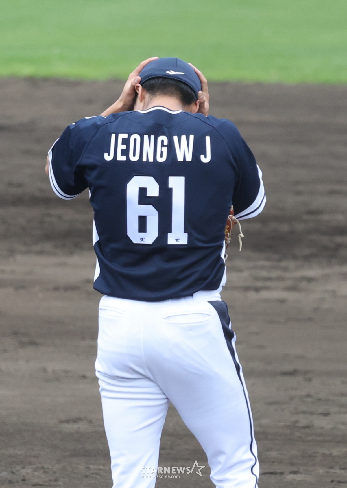 *此内容由AI翻译生成。WBC代表队20日在日本冲绳Onnason Akama球场与三星狮子队进行了练习赛。图为代表队第二位投手郑宇周在第4回合末被三星队的梁宇铉击出逆转3分球后,正在惋惜。© STARNEWS. 未经许可禁止转载或再分发*此内容由AI翻译生成。