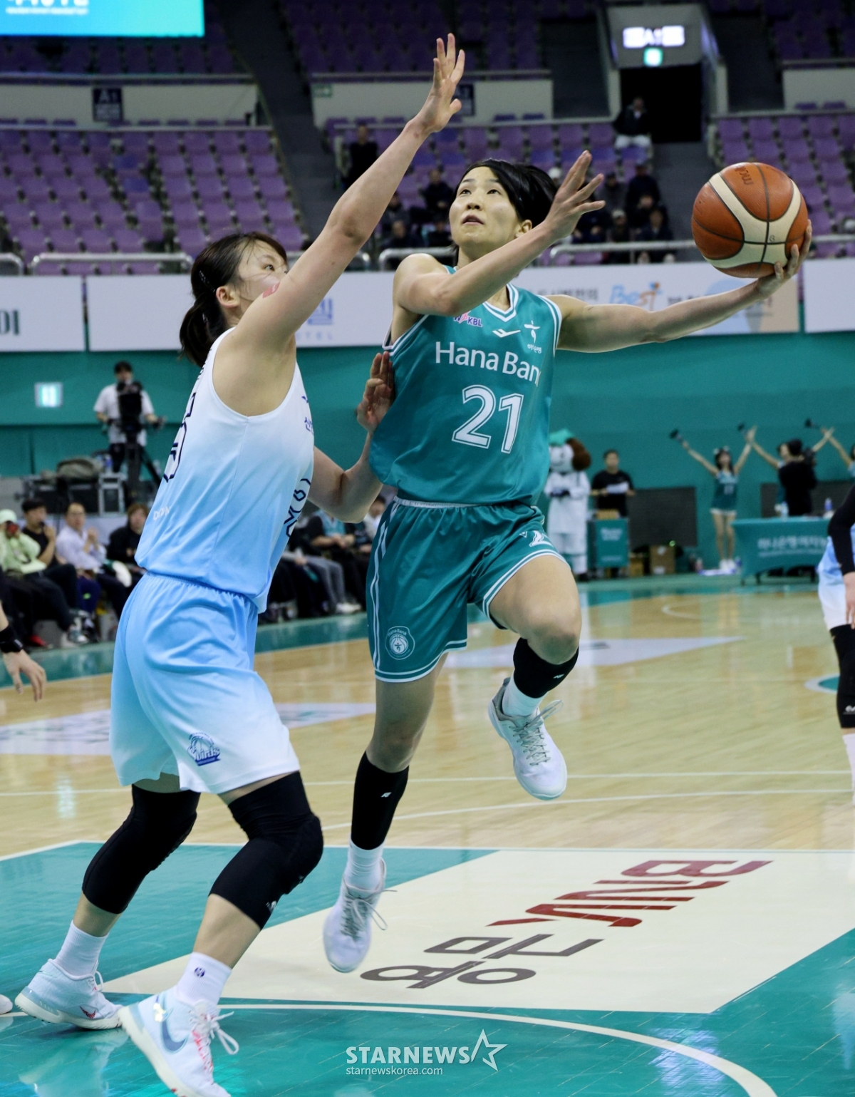 韩亚佐基20日在富川室内体育馆举行的BNK金融2025-2026 WKBL韩亚银行和新韩银行比赛中,突破了Mima Louis Mark,试图射门。 2026.02.20.