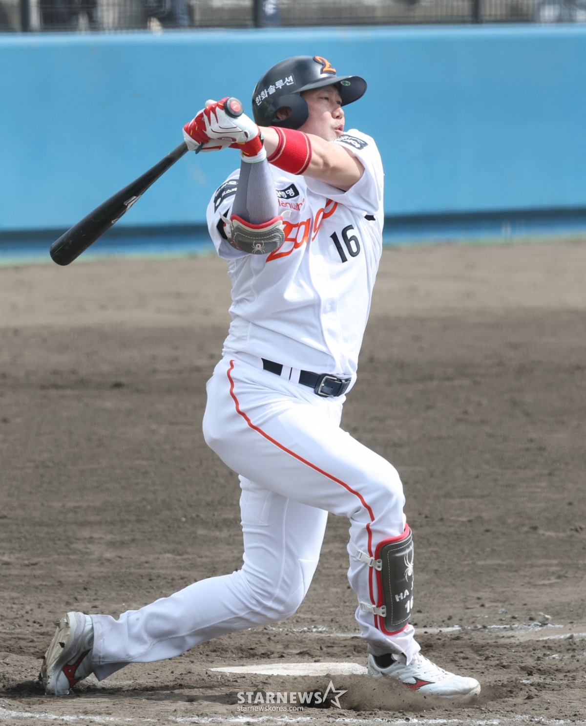 *此内容由AI翻译生成。WBC韩国棒球代表队21日在日本冲绳县八重江户球场与韩华鹰队进行了练习赛。图为,韩华夏主席正在痛快淋漓地击球。© STARNEWS. 未经许可禁止转载或再分发*此内容由AI翻译生成。