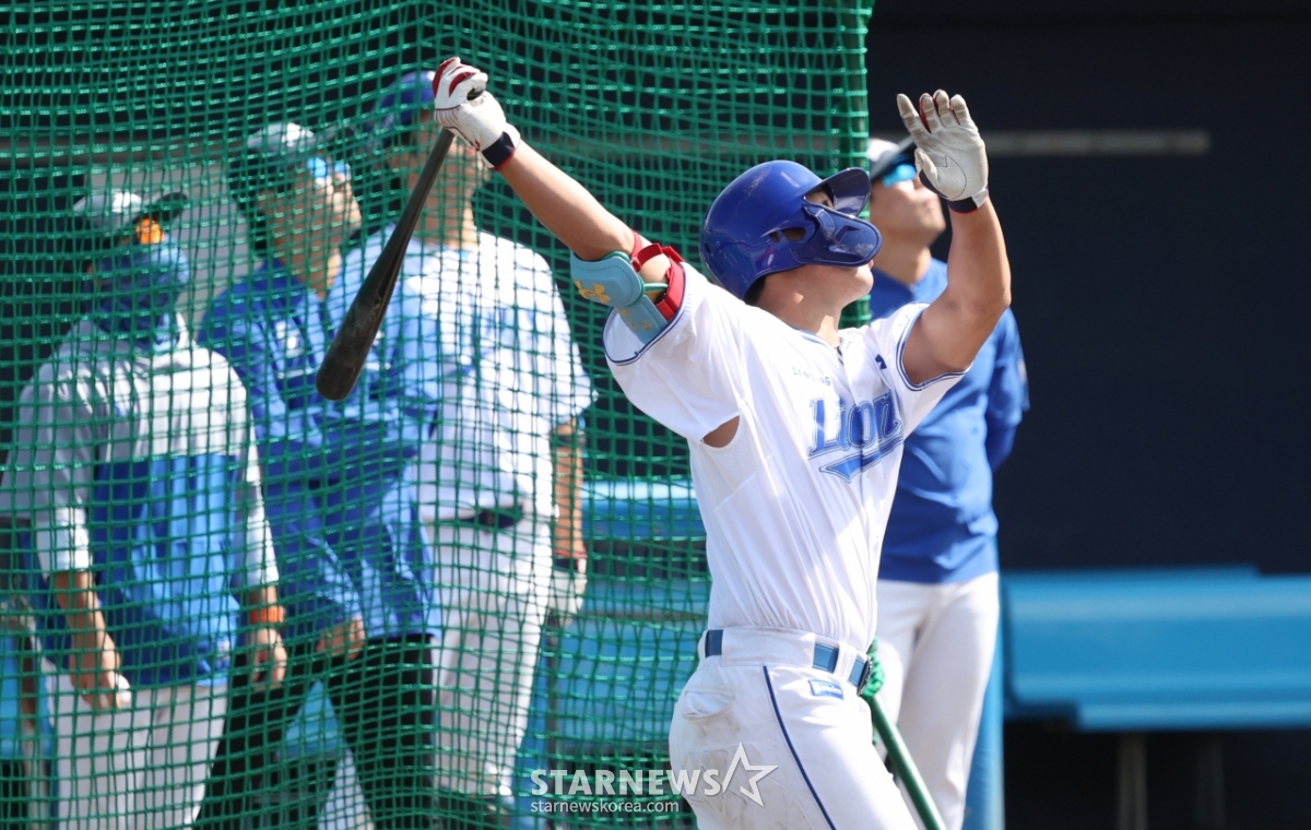 *此内容由AI翻译生成。22日,三星狮子队在日本冲绳Onnason Akama Ball Park进行了春季集训。图为金英雄正在现场击球。© STARNEWS. 未经许可禁止转载或再分发*此内容由AI翻译生成。