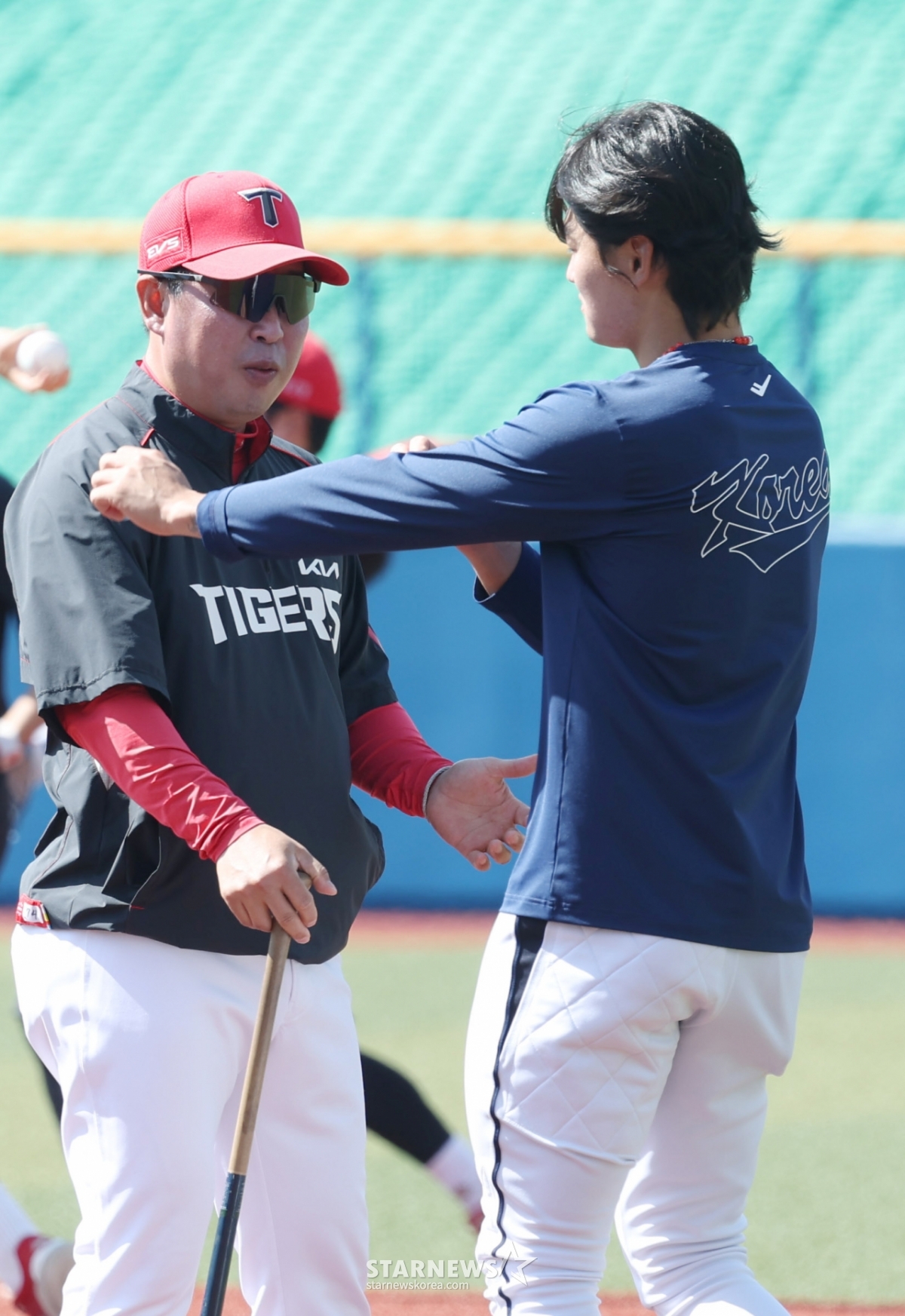 WBC韩国棒球代表队24日在日本冲绳县卡迪纳棒球场与KIA老虎队进行了练习赛。