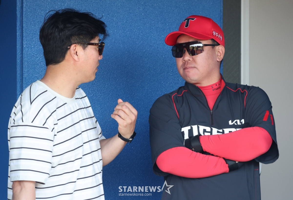 KIA老虎队24日在日本冲绳县卡德纳棒球场与WBC韩国棒球代表队进行了练习赛。