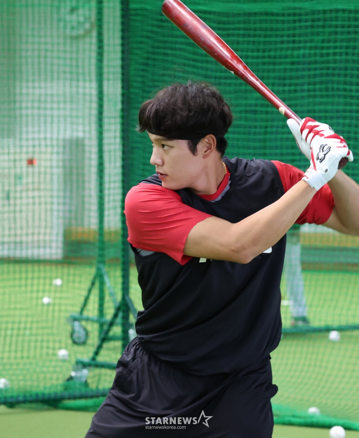 *此内容由AI翻译生成。25日,KIA老虎队在日本冲绳县KINTON的KINTON棒球体育场进行了春季集训。图为吴善宇正在进行击球训练。© STARNEWS. 未经许可禁止转载或再分发*此内容由AI翻译生成。