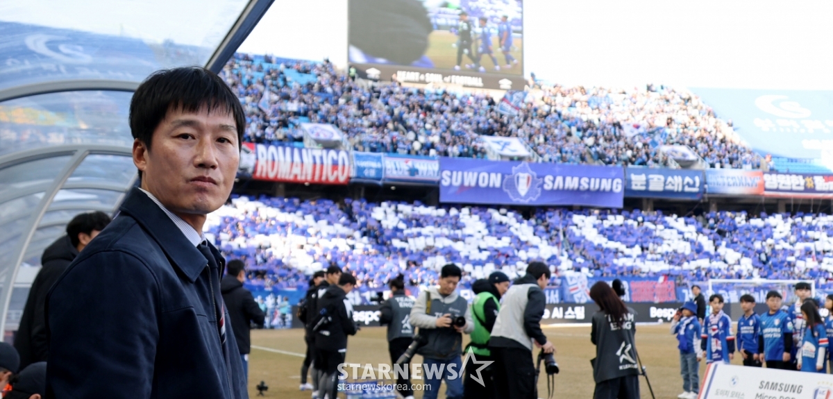 水原三星队主教练李正孝28日在水原世界杯体育场举行的2026韩亚银行K联赛第2场水原三星队与衣恋队的比赛中,正在进行首场比赛。 2026.02.28.
