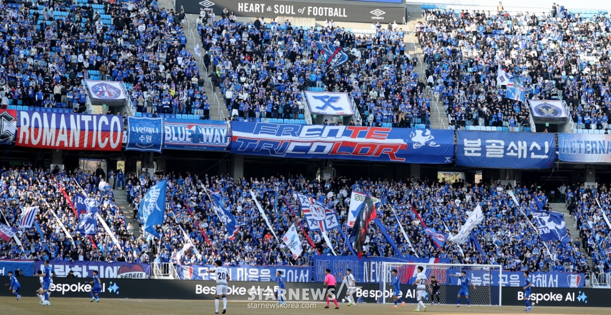 28日,在水原世界杯体育场举行的2026韩亚银行K联赛第2场水原三星队与衣恋队的比赛中,主教练李正孝将首次亮相,众多水原三星队支持者正在为他加油助威。 2026.02.28.
