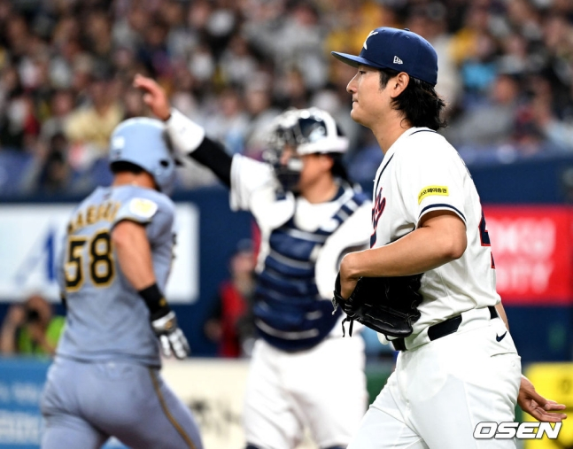 最终,金光三教练站到了投手踏板上,让郭彬平静了下来。 中野的左翼手腾空球被琼斯抓住,结束第2回合的郭彬从第3回合开始把球传给了卢景恩。 卢景恩(SSG)以攻击性的投球在1局内以犯规出局的方式干净利落地阻止了对方的进攻,形成了鲜明的对比。