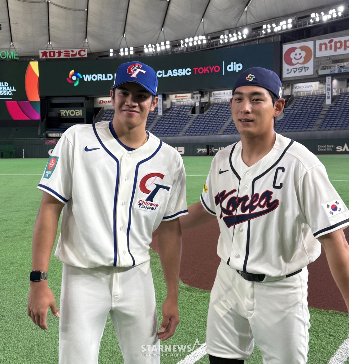 *此内容由AI翻译生成。台湾队长陈杰贤、投手林伟恩在2026WBC东京回合开幕前一天的4日结束东京巨蛋正式训练后,来到下一支训练队韩国队长李政厚握手致意。 2026.03.04.台湾队长陈杰贤、投手林伟恩在2026WBC东京回合开幕前一天的4日结束东京巨蛋正式训练后,来到下一支训练队韩国队长李政厚握手致意。 2026.03.04.© STARNEWS. 未经许可禁止转载或再分发*此内容由AI翻译生成。