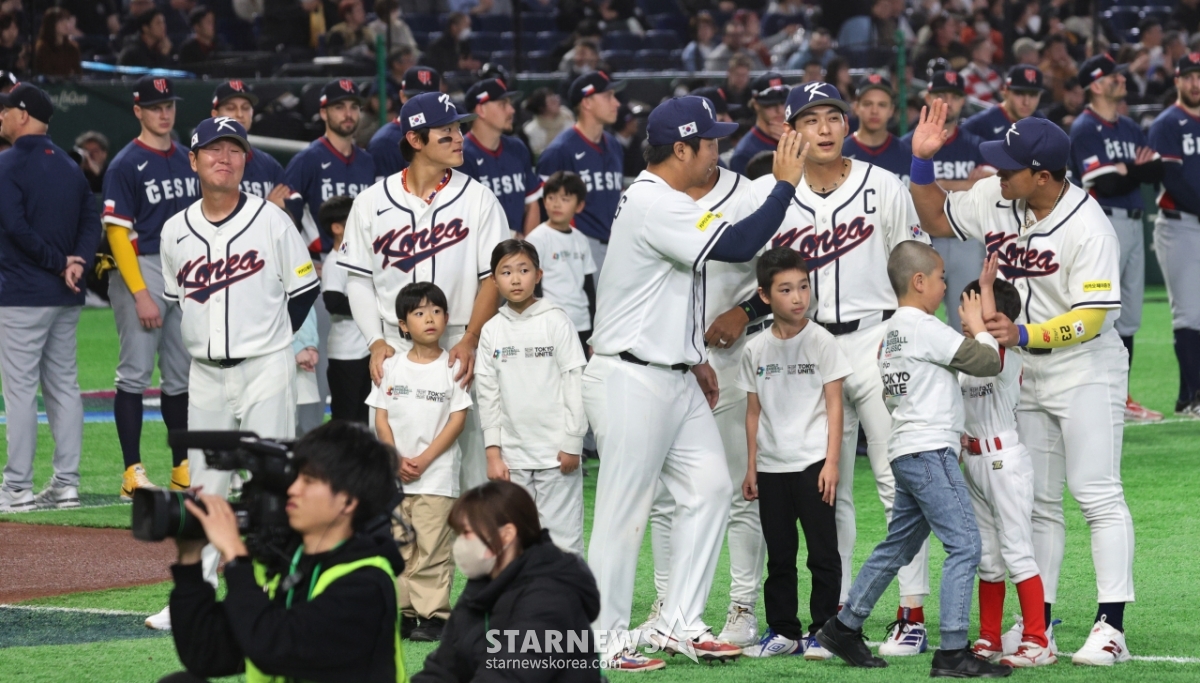 *此内容由AI翻译生成。5日,在东京巨蛋体育场举行的2026WBC东京POOL开幕第二场比赛中,柳智贤教练和野兽们为了韩国队和捷克队的比赛,正在走向球场,互相击掌。 2026.03.05.© STARNEWS. 未经许可禁止转载或再分发*此内容由AI翻译生成。