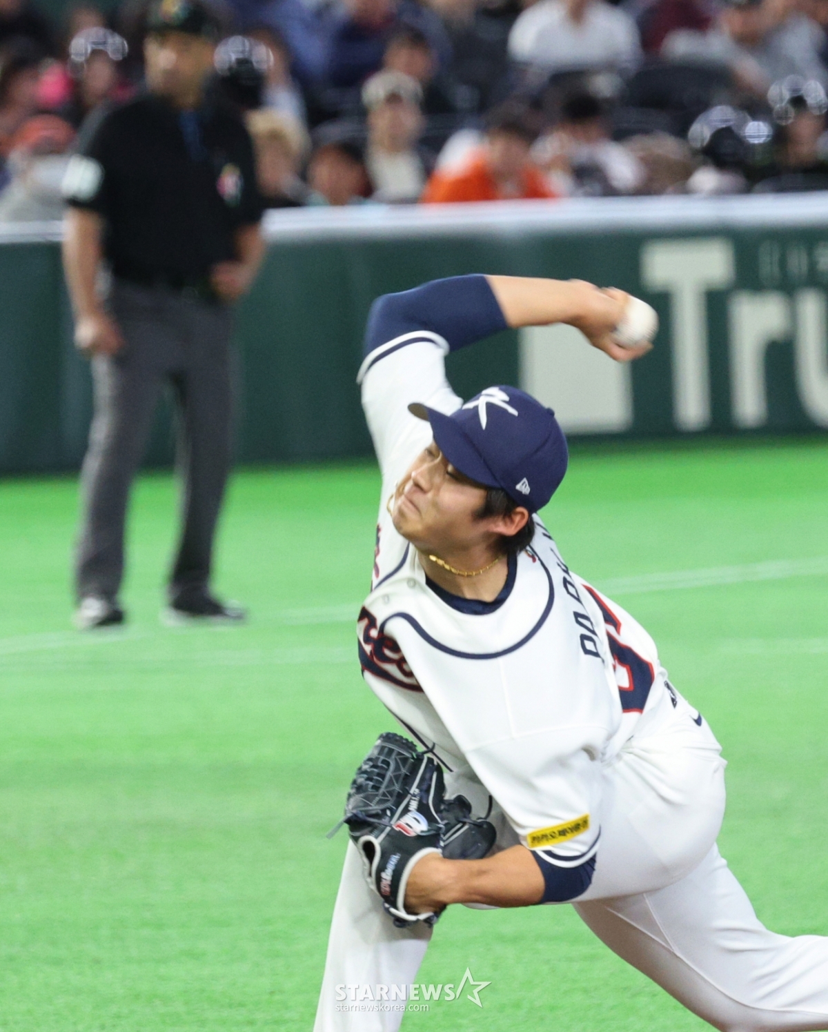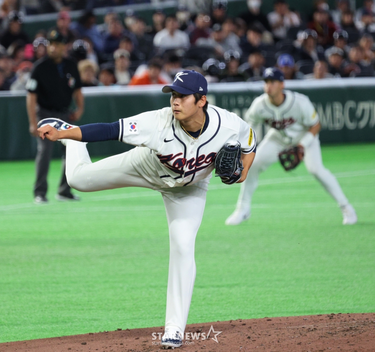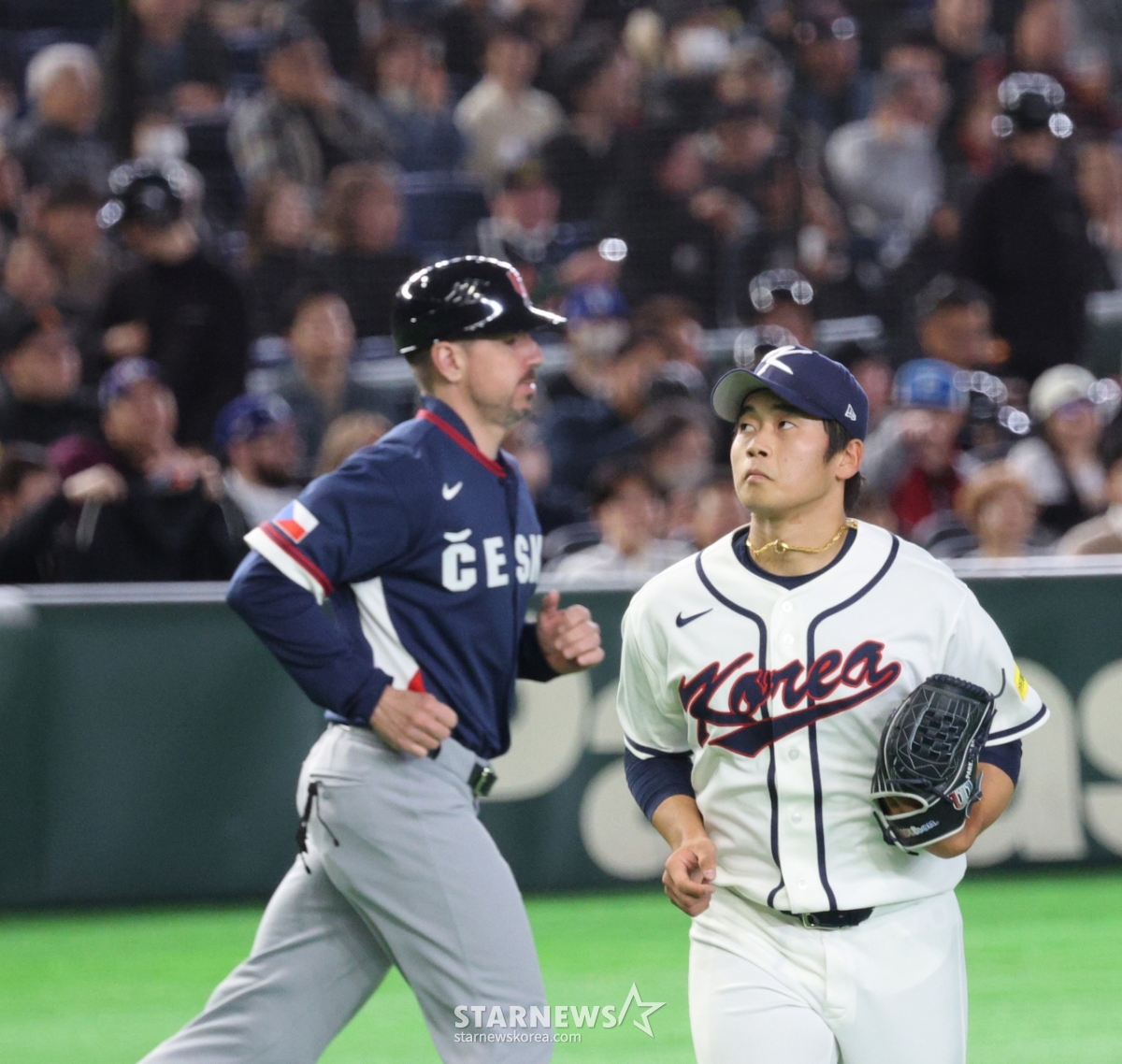 *此内容由AI翻译生成。5日,在东京巨蛋体育场举行的2026WBC东京POOL开幕第2场比赛上,韩国队与捷克队的比赛第6回合初,韩国队右撇子投手朴永铉以无失分的成绩结束了本局比赛。 2026.03.05.© STARNEWS. 未经许可禁止转载或再分发*此内容由AI翻译生成。