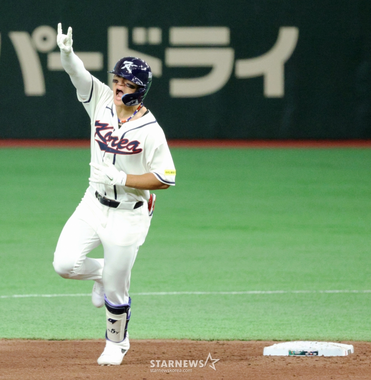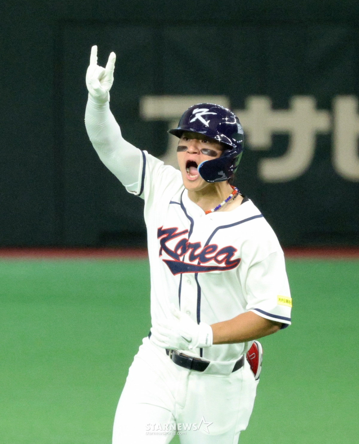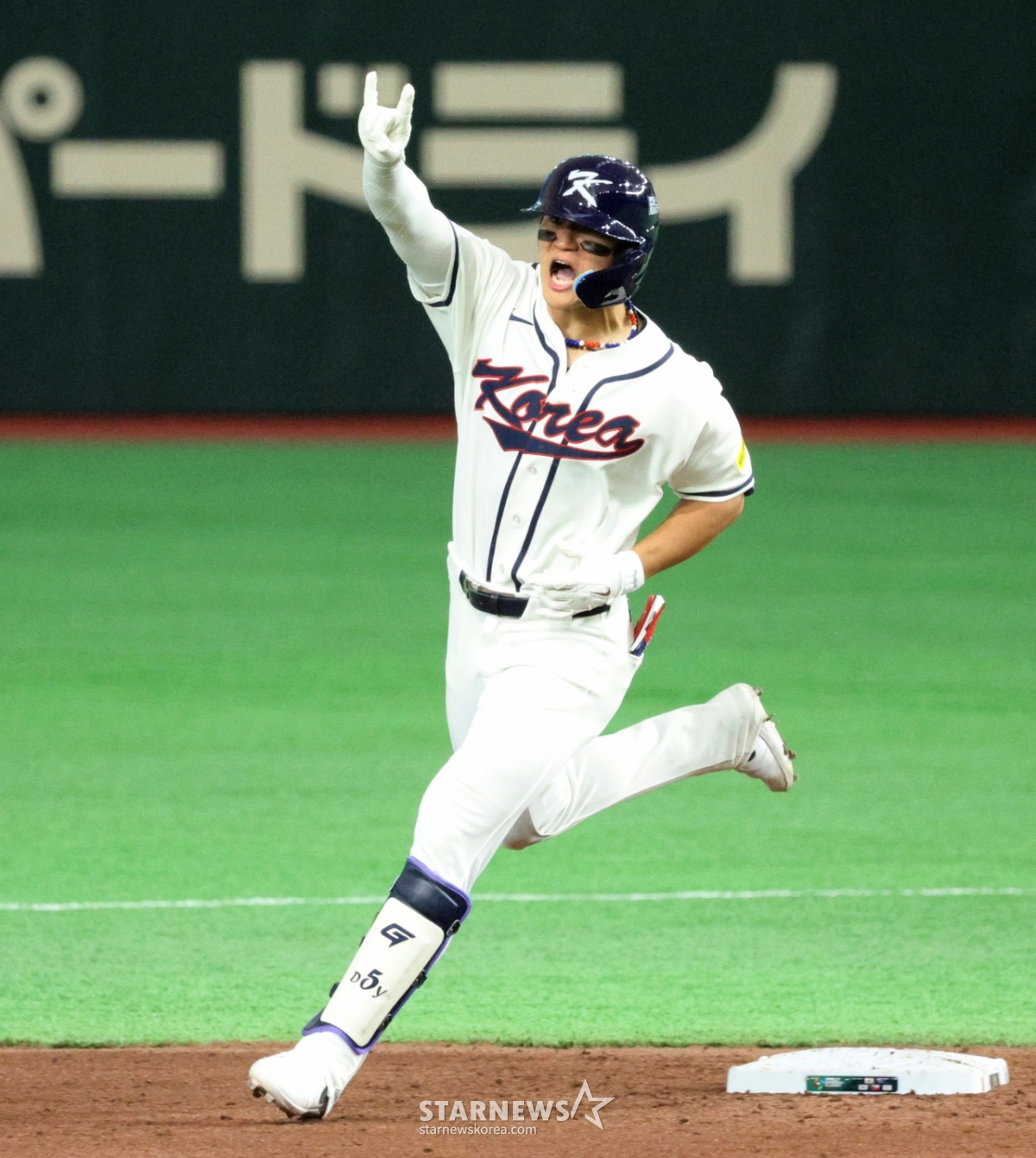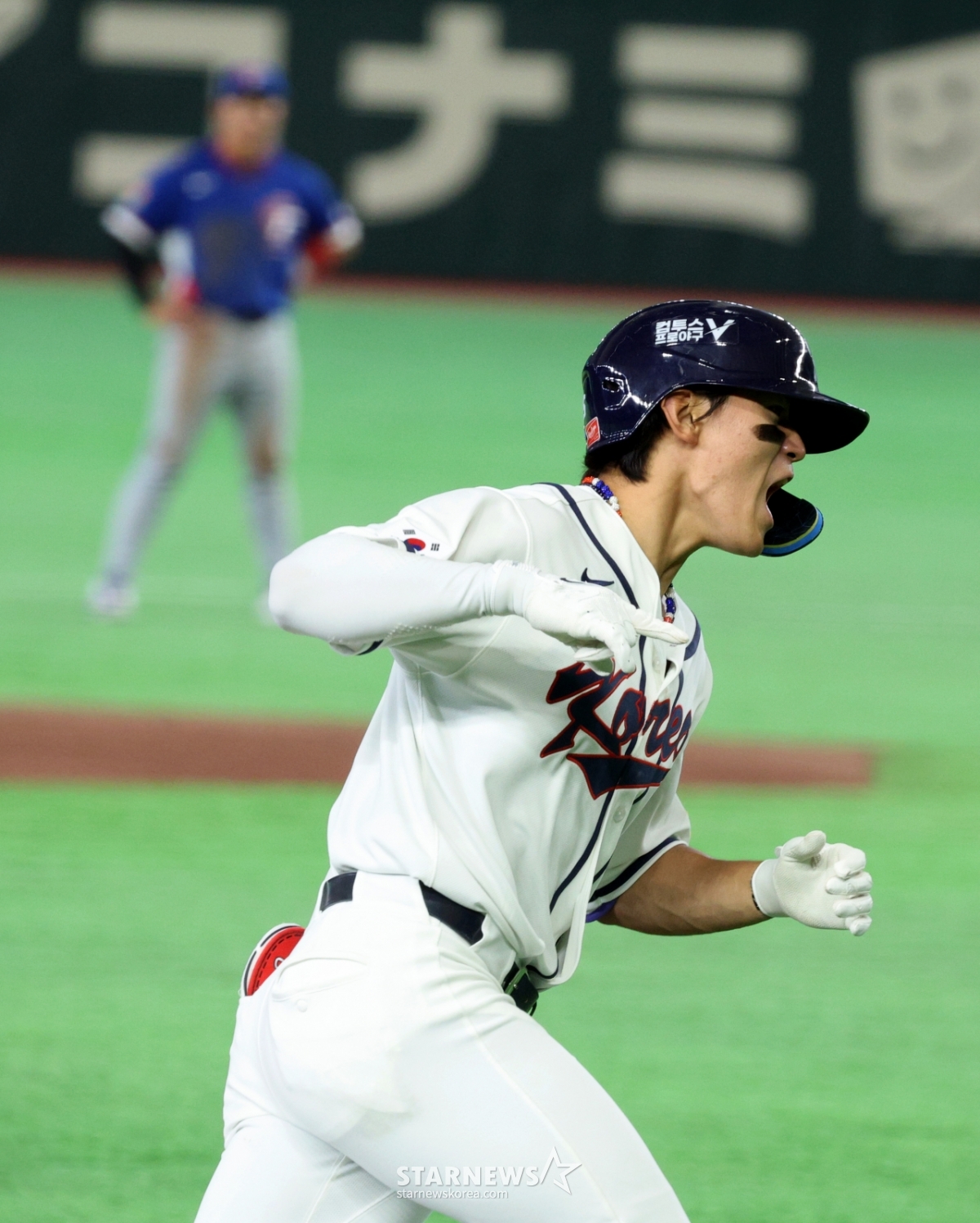 *此内容由AI翻译生成。8日,在东京巨蛋体育场举行的2026 WBC东京POOL韩国队与台湾队的比赛第6回合末,在1人出局1人在垒的情况下,韩国队1号击球手金道英击出逆转2分本垒打后,正在回本垒。 026.03.08.© STARNEWS. 未经许可禁止转载或再分发*此内容由AI翻译生成。