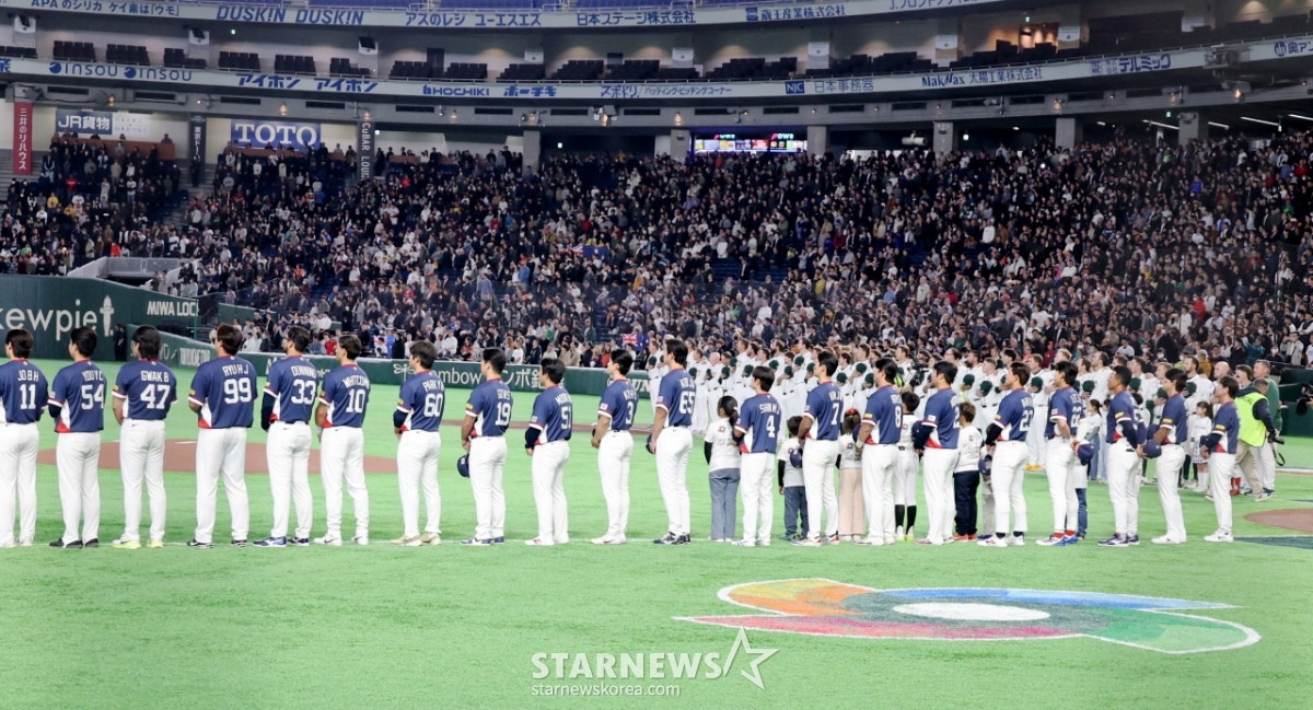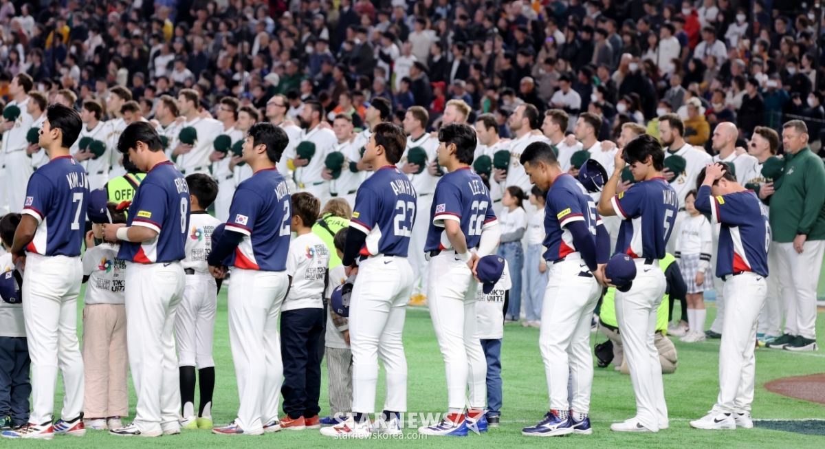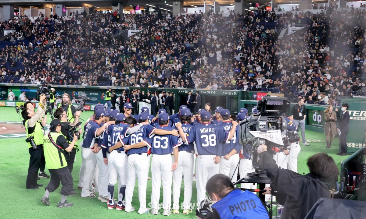 *此内容由AI翻译生成。9日,在东京巨蛋体育场举行的2026 WBC东京POOL大韩民国队与澳大利亚队的比赛中,棒球代表队队长李正厚和选手们正在下定决心。 026.03.08.© STARNEWS. 未经许可禁止转载或再分发*此内容由AI翻译生成。