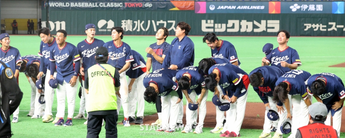 9日,在东京巨蛋体育场举行的2026 WBC东京POOL韩国队与澳大利亚队的比赛中,韩国棒球队队长李正厚等选手以7比2获胜,确定前往迈阿密后,在离开球场前向助威的球迷们致意。 026.03.08.