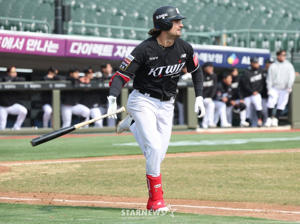 12日,2026新韩SOL Bank KBO联赛示范赛乐天巨人队对KT WIZ的比赛在釜山社稷棒球场举行。