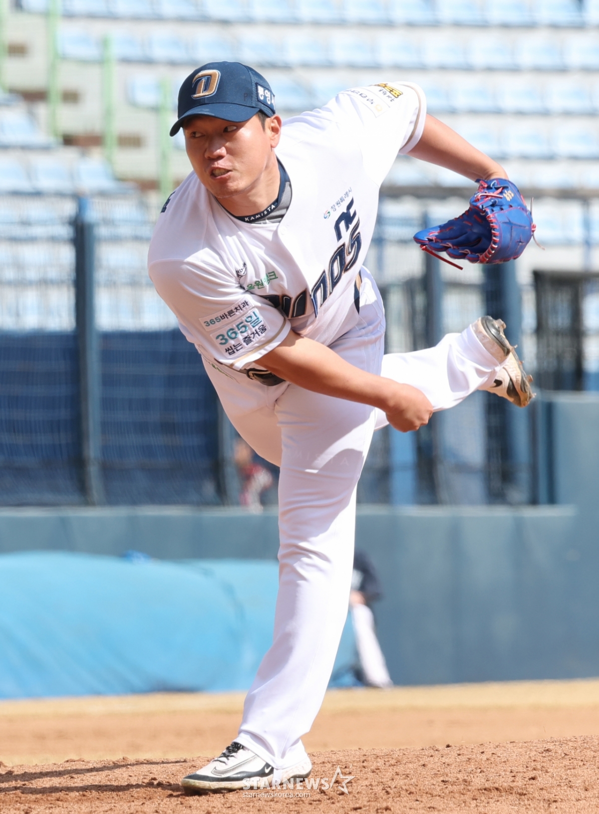 *此内容由AI翻译生成。13日,2026新韩SOL Bank KBO联赛表演赛NC Dinos对LG Twins的比赛在庆南昌原市马山棒球场举行。NC队的金载烈正在奋力投球。© STARNEWS. 未经许可禁止转载或再分发*此内容由AI翻译生成。
