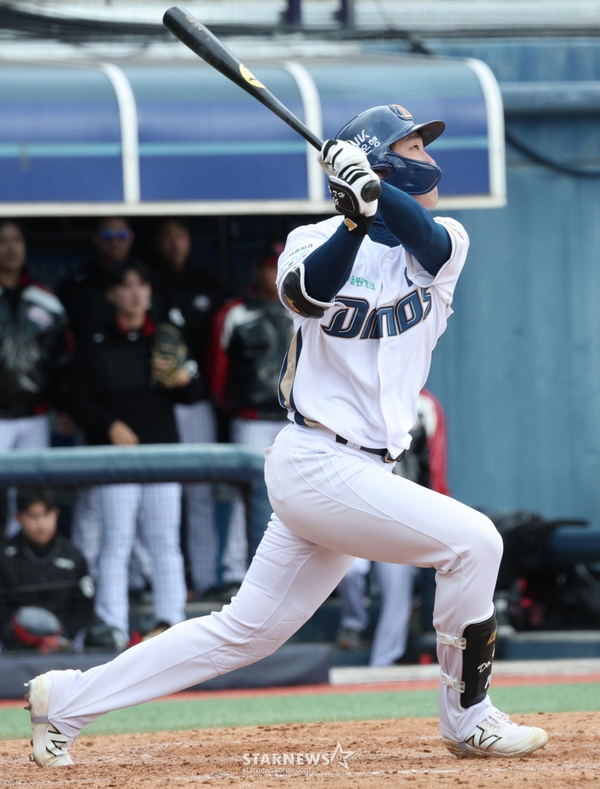 *此内容由AI翻译生成。13日,2026新韩SOL Bank KBO联赛表演赛NC Dinos对LG Twins的比赛在庆南昌原市马山棒球场举行。图为NC队的都泰勋正在痛快淋漓地击球。© STARNEWS. 未经许可禁止转载或再分发*此内容由AI翻译生成。