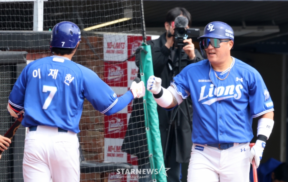*此内容由AI翻译生成。16日,在仁川SSG兰德斯球场举行的2026职业棒球表演赛SSG兰德斯队与三星狮子队比赛第3回合初,三星队1号李在贤在2人出局后,面对全英俊击出先发制人的1分本垒打后,正在返回本垒。 2026.03.16© STARNEWS. 未经许可禁止转载或再分发*此内容由AI翻译生成。