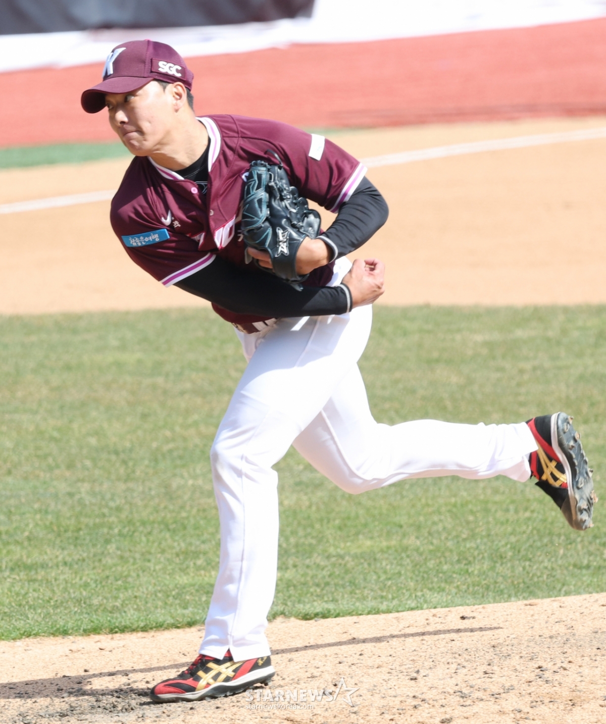 *此内容由AI翻译生成。19日,2026新韩SOL Bank KBO联赛表演赛KT WIZ对KIWOOM HEROZ的比赛在水原KT WIZ PARK举行。Kiwoom队的金成镇(音)正在奋力拼搏。© STARNEWS. 未经许可禁止转载或再分发*此内容由AI翻译生成。