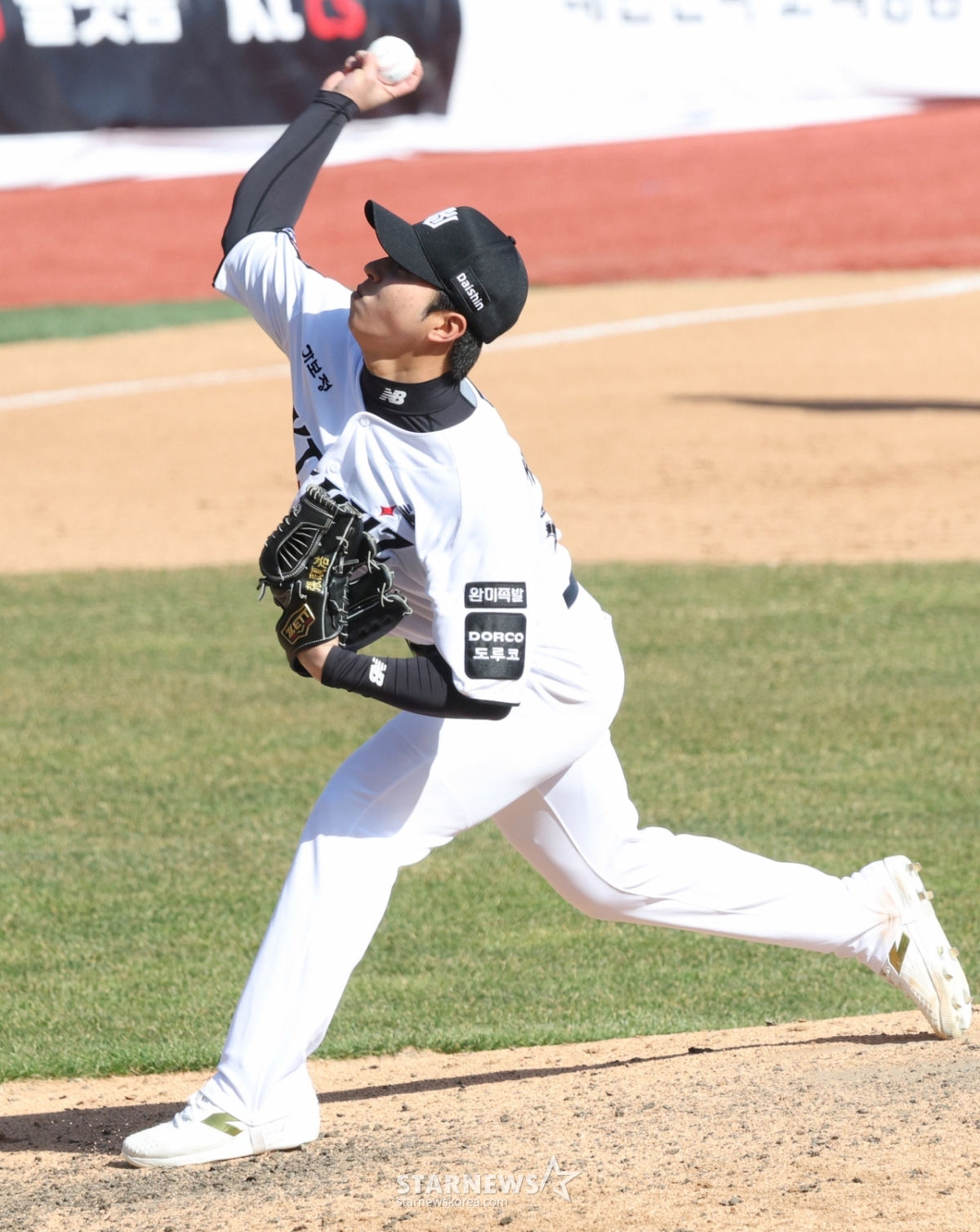 *此内容由AI翻译生成。19日,2026新韩SOL Bank KBO联赛表演赛KT WIZ对KIWOOM HEROZ的比赛在水原KT WIZ PARK举行。KT队的张民皓正在奋力拼搏。© STARNEWS. 未经许可禁止转载或再分发*此内容由AI翻译生成。