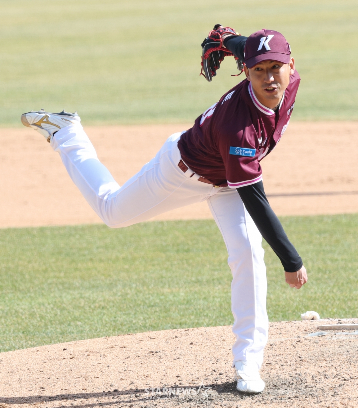 *此内容由AI翻译生成。19日,2026新韩SOL Bank KBO联赛表演赛KT WIZ对KIWOOM HEROZ的比赛在水原KT WIZ PARK举行。Kiwoom队的Yuto正在奋力投球。© STARNEWS. 未经许可禁止转载或再分发*此内容由AI翻译生成。
