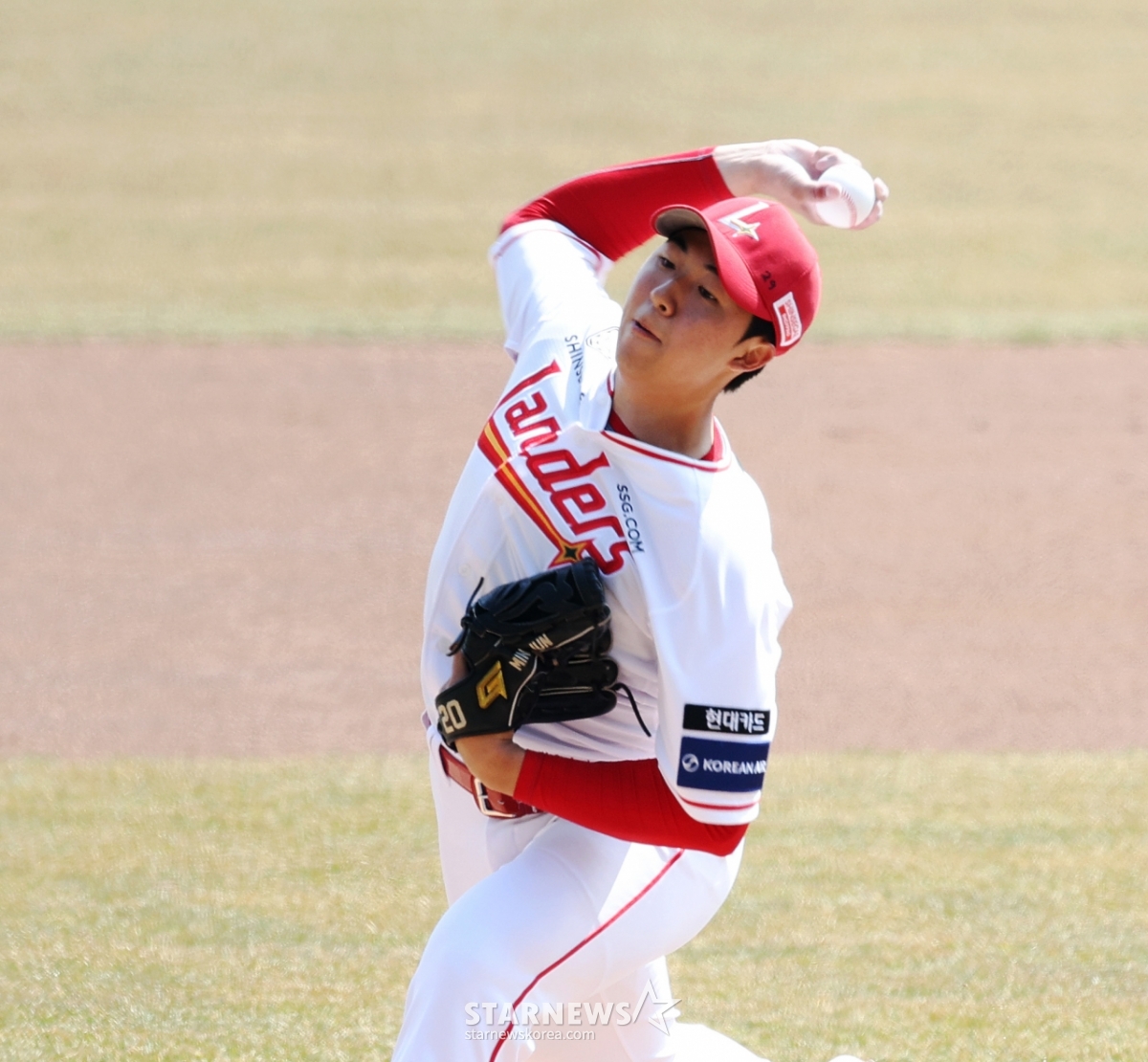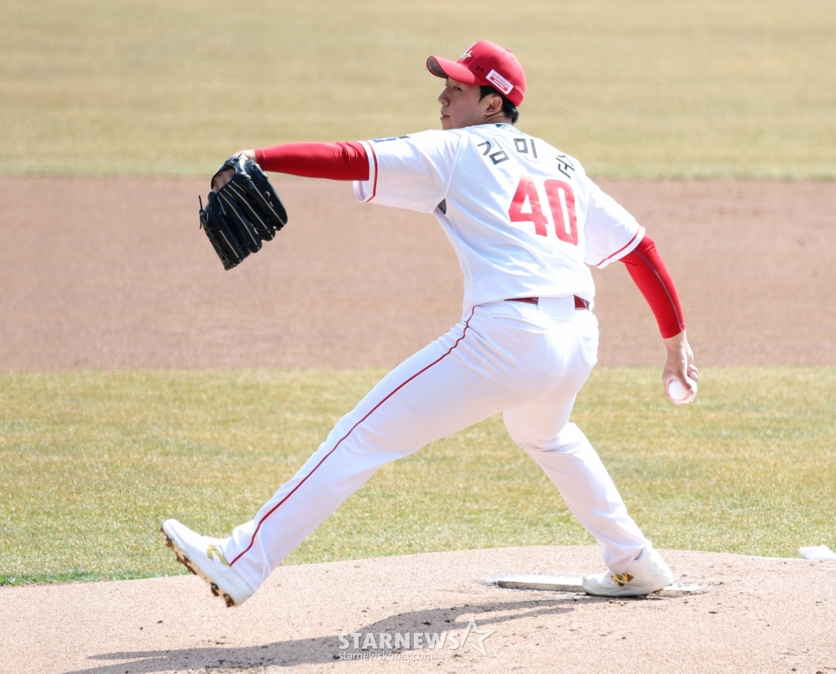 *此内容由AI翻译生成。SSG右撇子投手金民俊19日在仁川SSG兰德斯球场举行的2026职业棒球ㄴSSG兰德斯和LG双子队的比赛中先发投手。 2026.03.19.© STARNEWS. 未经许可禁止转载或再分发*此内容由AI翻译生成。