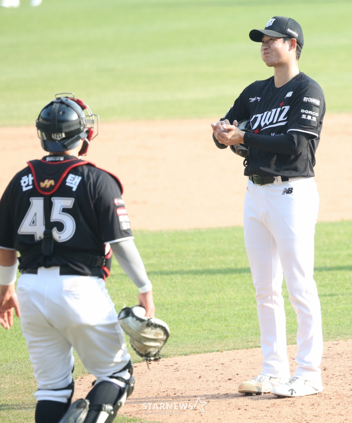 *此内容由AI翻译生成。28日,2026新韩SOL Bank KBO联赛正式揭幕战LG Twins对KT Wiz的比赛在首尔蚕室棒球场举行。KT杉本在第8回合末被对方连续击出安打后,正在被替换下场。© STARNEWS. 未经许可禁止转载或再分发*此内容由AI翻译生成。