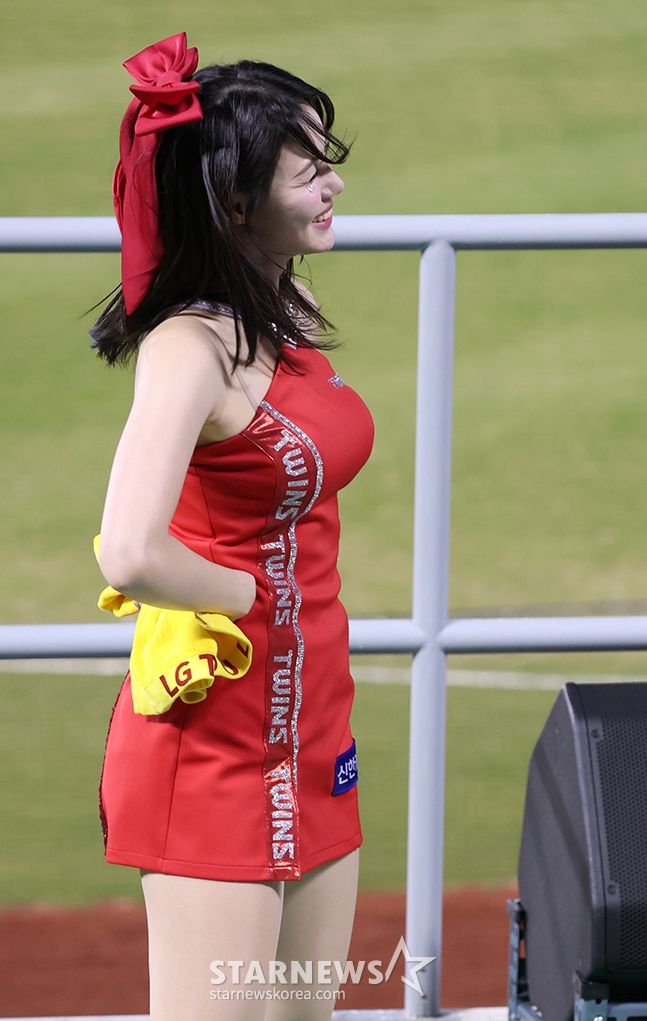图为LG队的啦啦队队员高艺智(音)正在热情助威。
