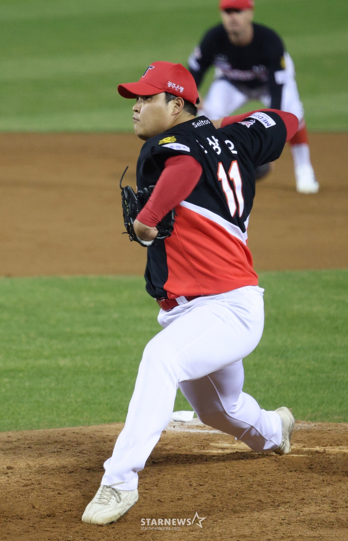 *此内容由AI翻译生成。1日,2026新韩SOL Bank KBO联赛LG双子队对KIA老虎队的比赛在首尔蚕室棒球场举行。图为,起亚队的赵相佑正在奋力投球。© STARNEWS. 未经许可禁止转载或再分发*此内容由AI翻译生成。