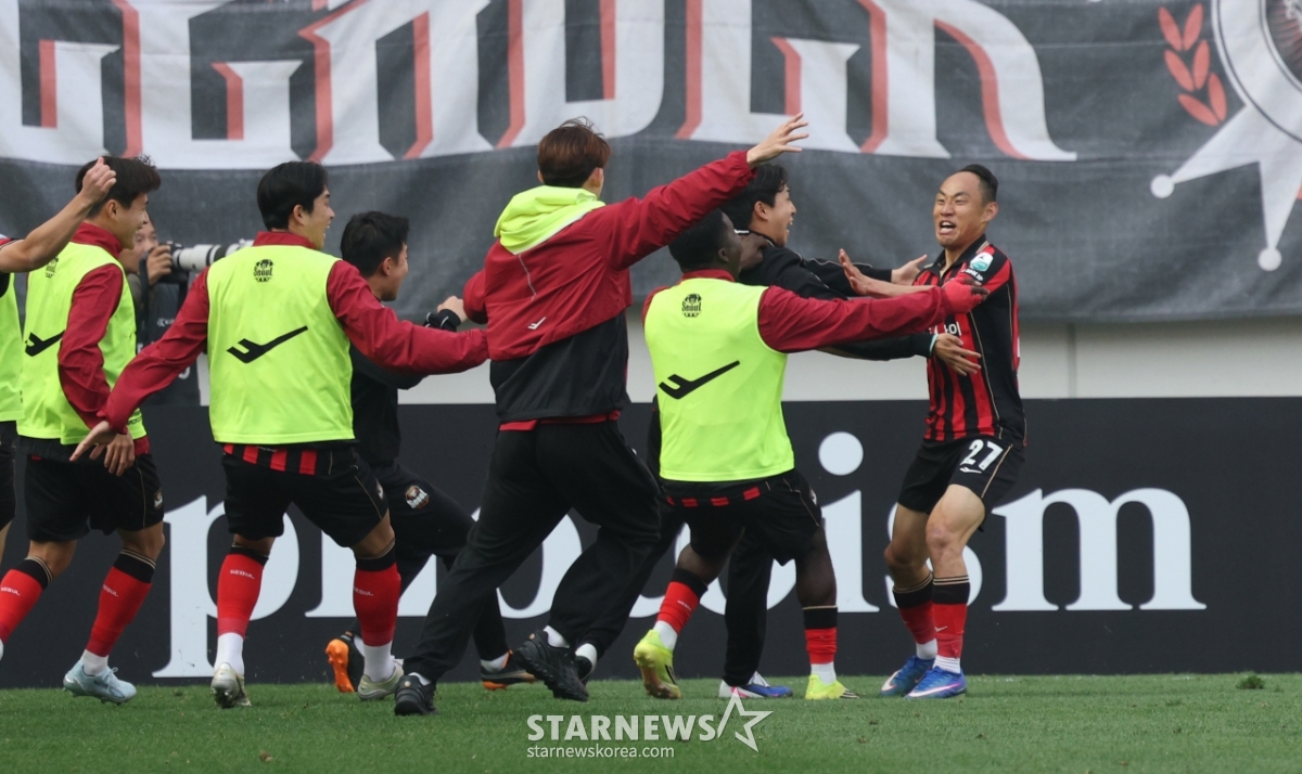 FC首尔队的文宣民在下半场补时阶段看到克里马拉攻入制胜一球,就像自己射进了一球一样高兴。