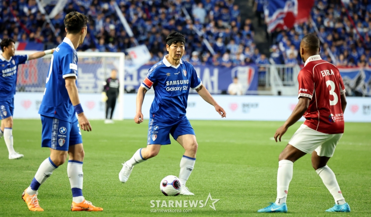 *此内容由AI翻译生成。19日,在水原世界杯体育场举行的OGFC和水原三星的传奇对决中,宋中国将球传到了前方。 2026.04.19.© STARNEWS. 未经许可禁止转载或再分发*此内容由AI翻译生成。