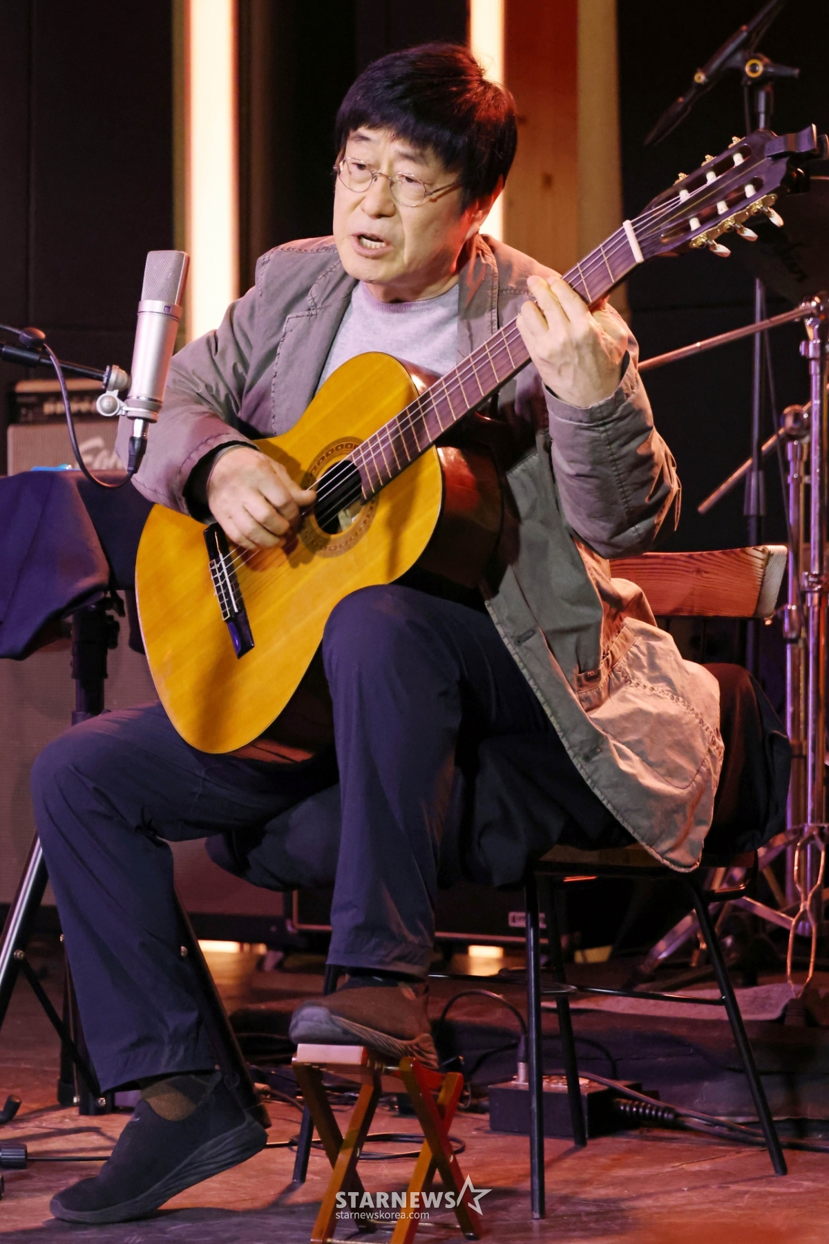 歌手金昌完27日下午在首尔钟路区Panta Carage举行的单曲《Seventy》发行记者见面会上给出席者送上了歌曲礼物。